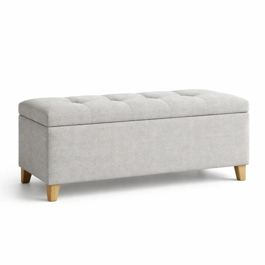 Banc de rangement en tissu avec pieds en bois