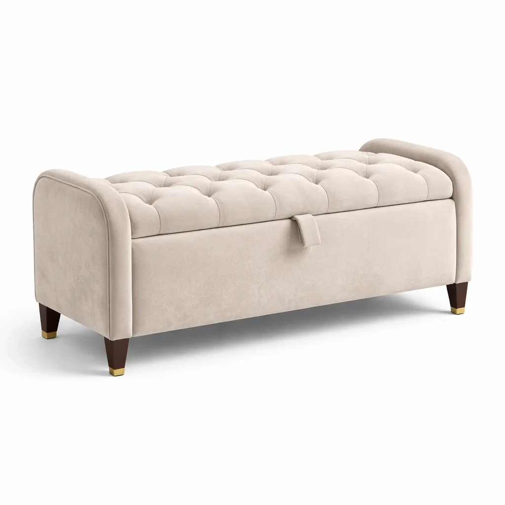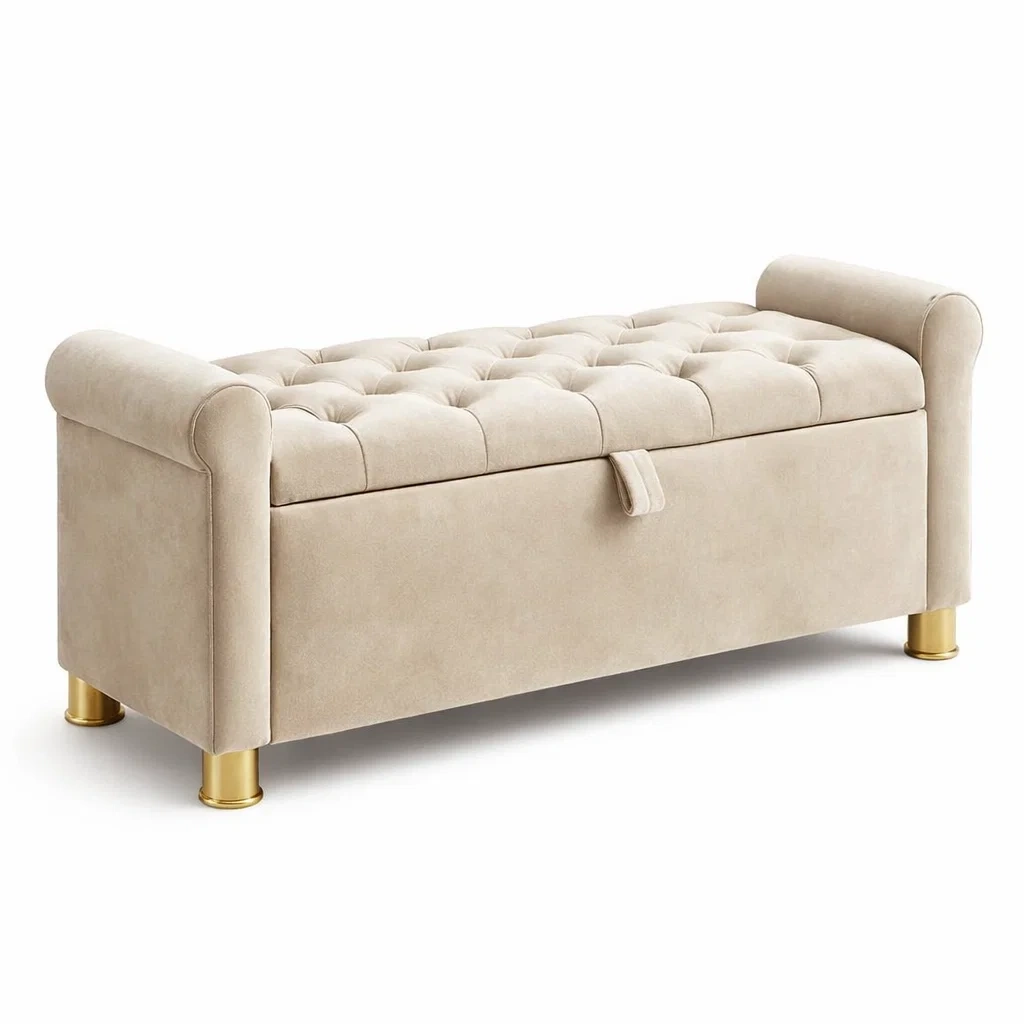Banc de rangement en velours beige