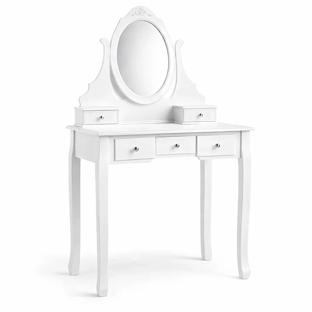 Coiffeuse en bois avec miroir ovale blanc