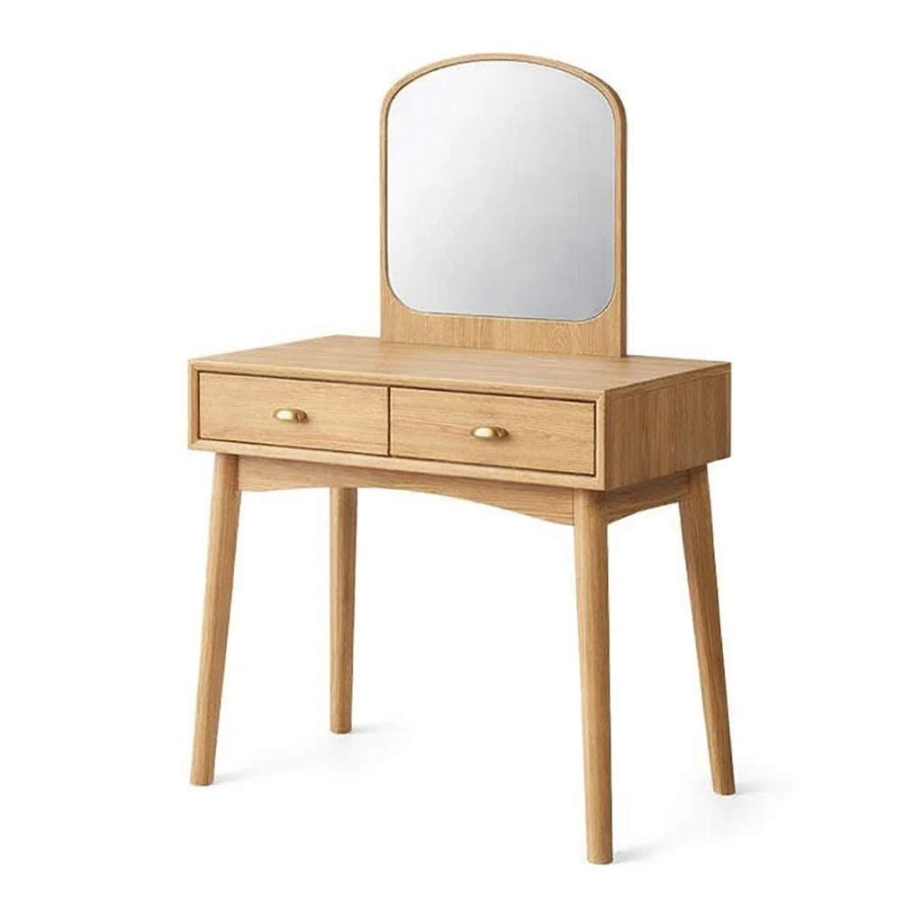 Coiffeuse en bois de chêne avec miroir arqué et rangements