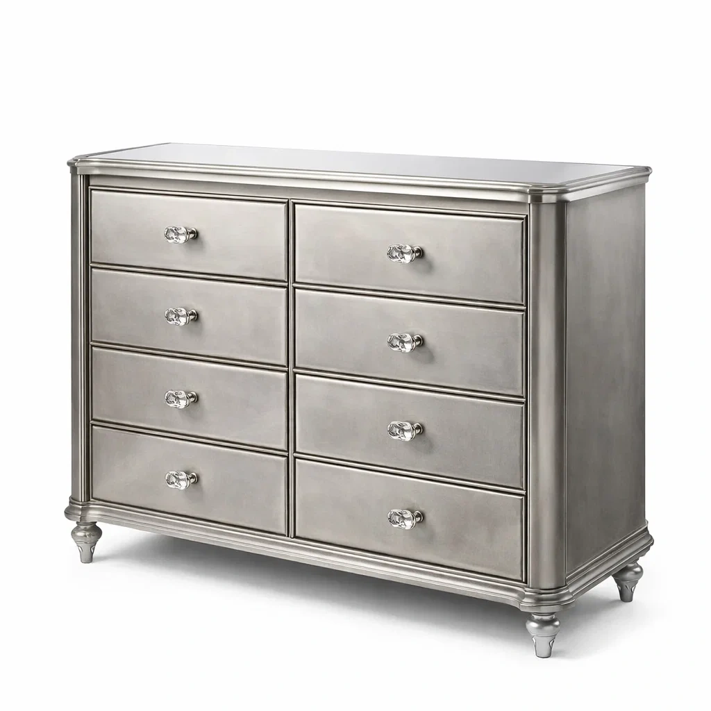 Commode en métal 8 tiroirs argentée