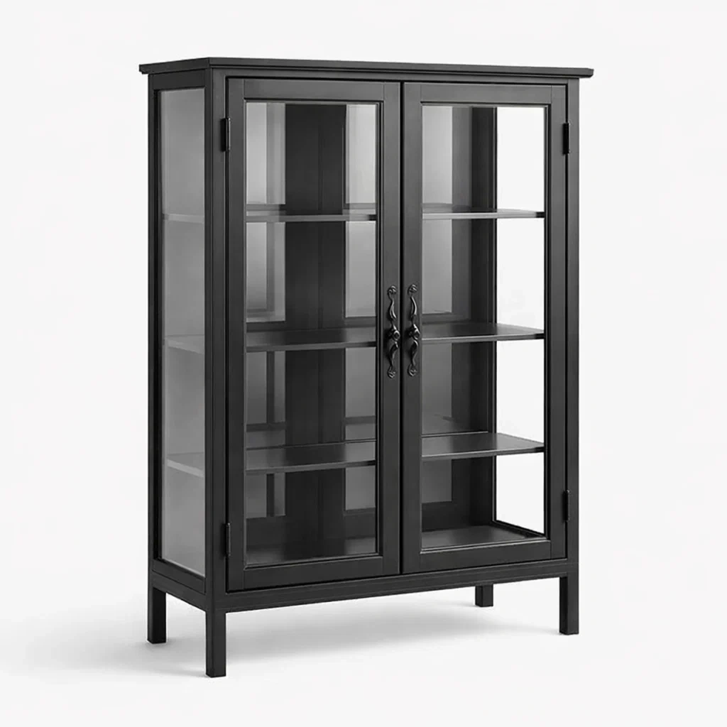 Vitrine en métal et verre trempé noir