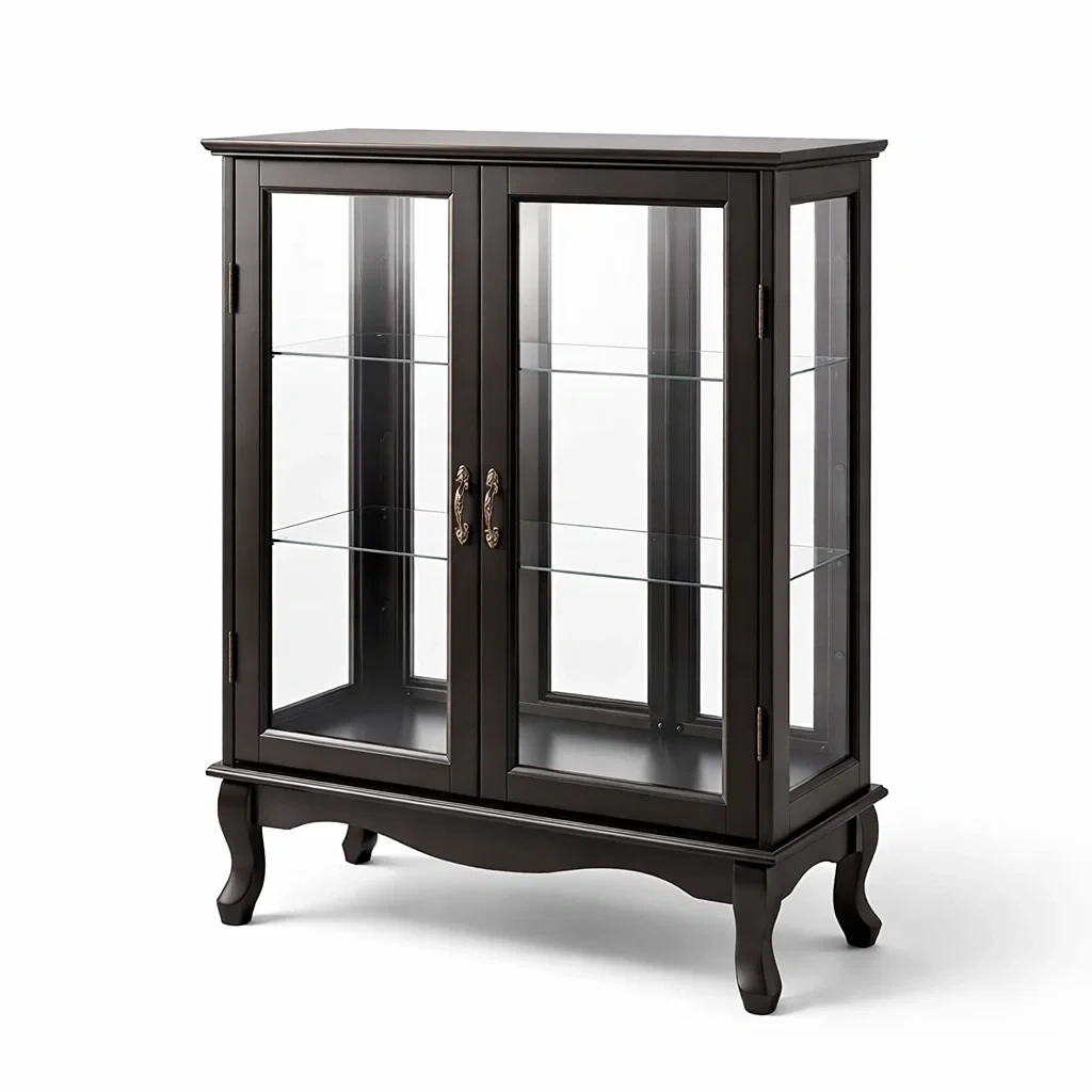 Vitrine en bois avec portes en verre trempé