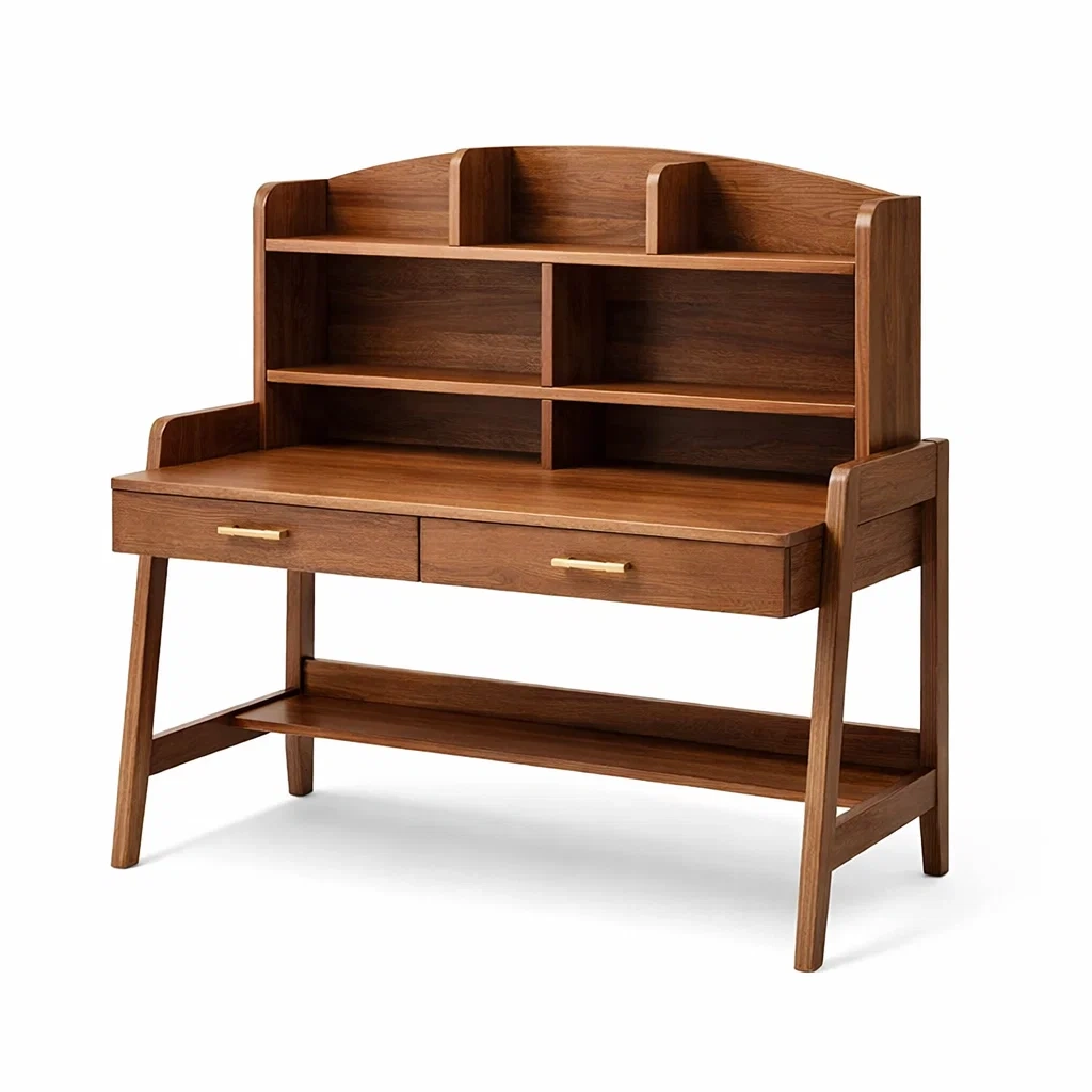 Ce bureau est fabriqué en bois de noyer, offrant une structure robuste et durable.