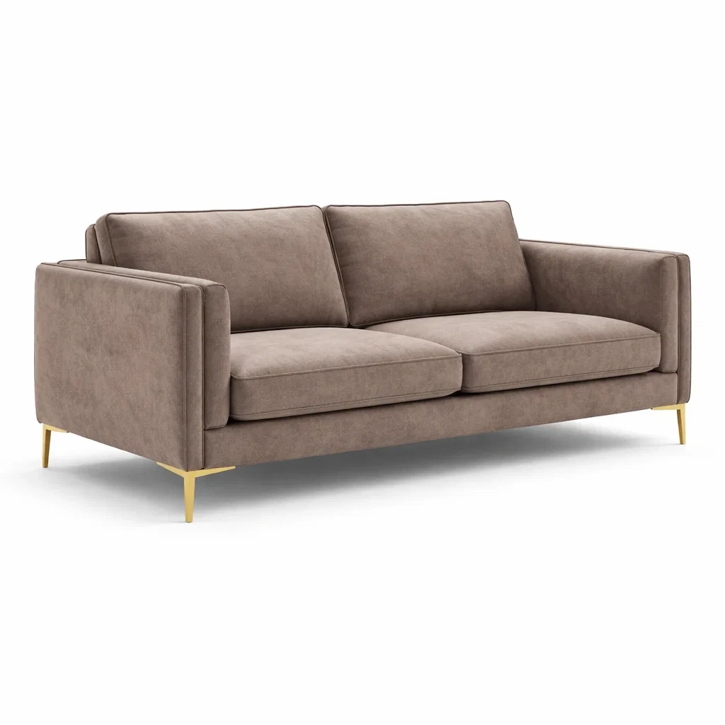 Canapé 3 places en microfibre brun avec pieds en métal doré