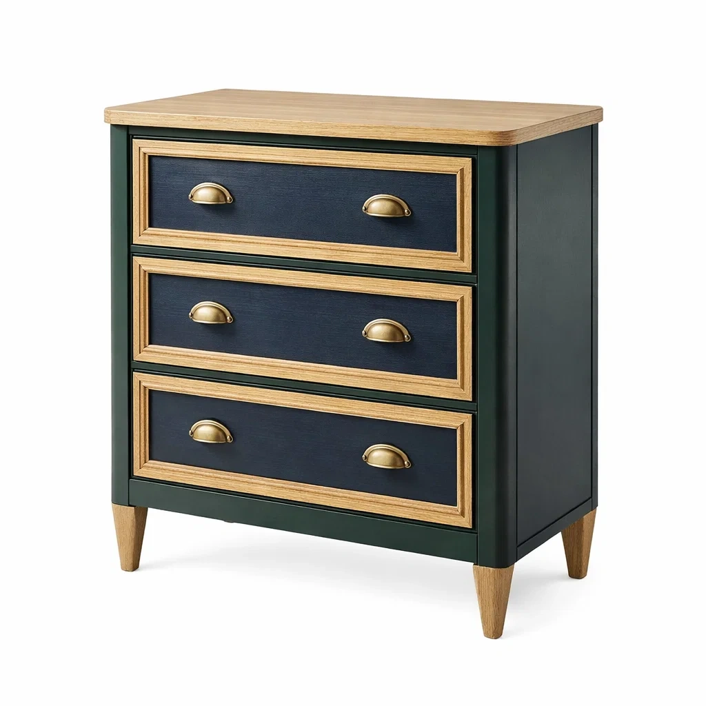 Couleur : Bleu et Chêne. Dispose de trois tiroirs pour un rangement efficace.