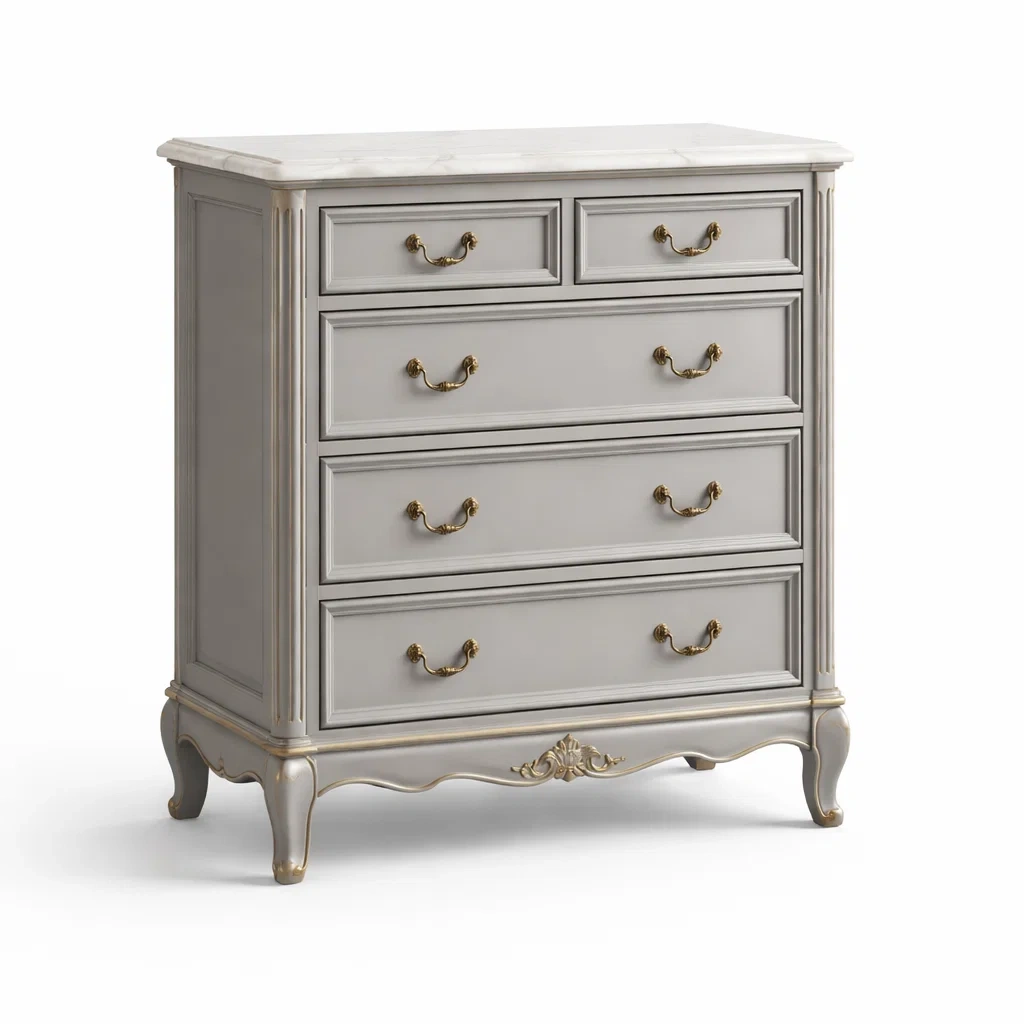Caractéristiques : Poignées dorées en métal, plateau supérieur en marbre
