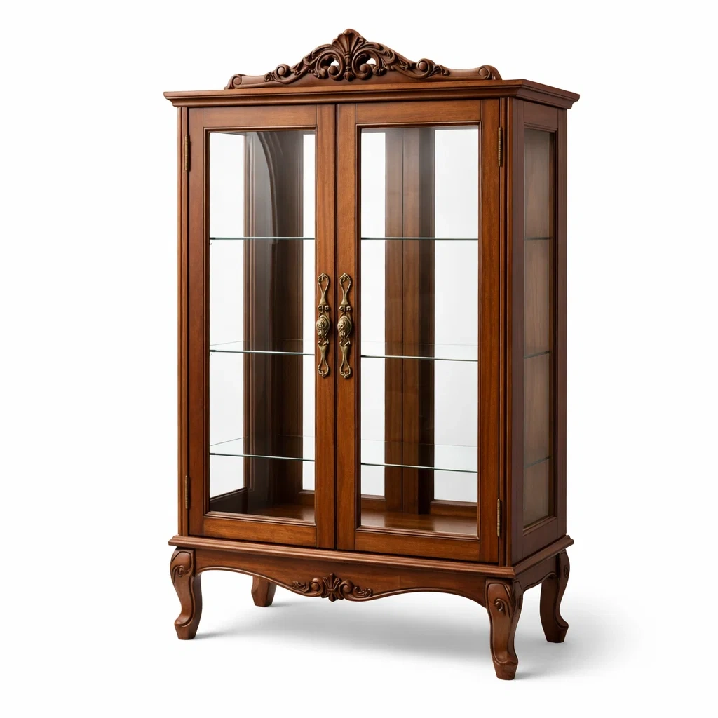 Vitrine en bois et verre trempé 180 x 90 x 40 cm marron