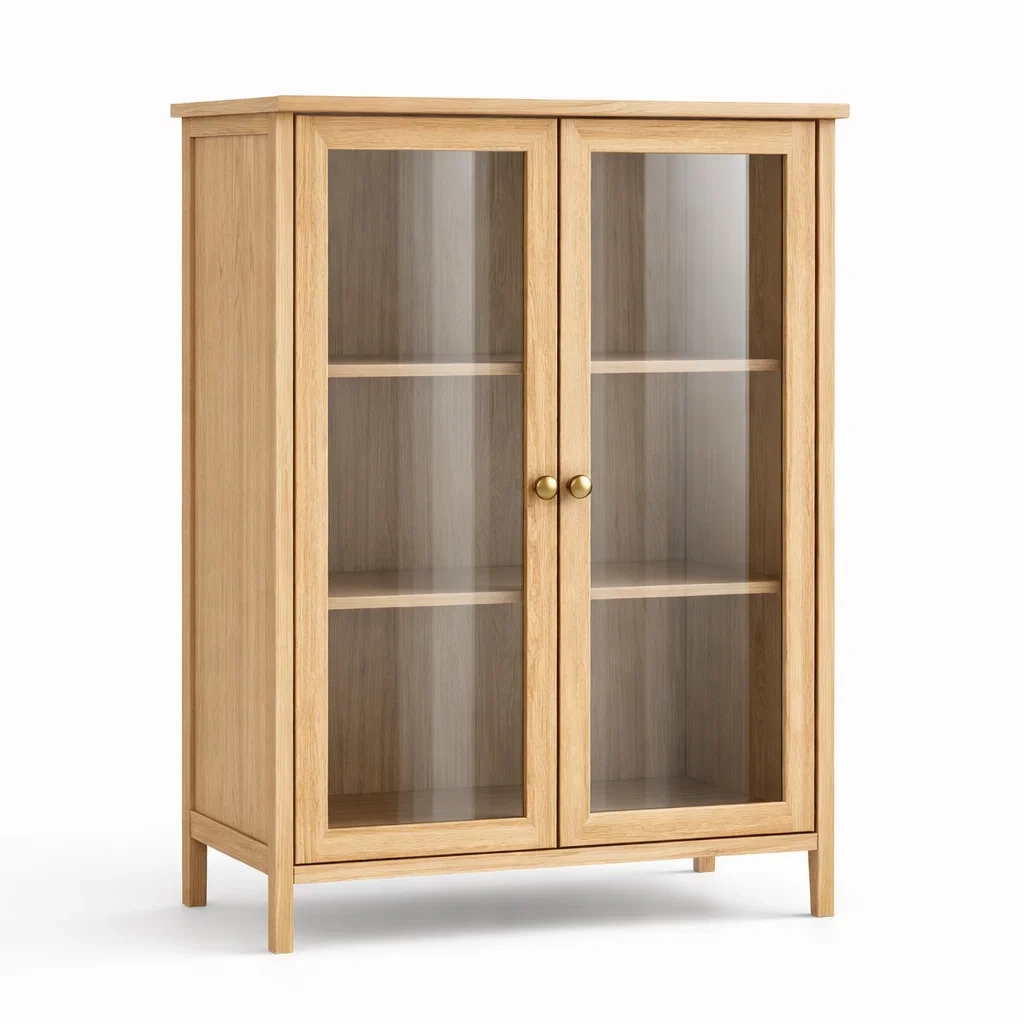 Caractéristiques : Portes en verre, 3 étagères en chêne
